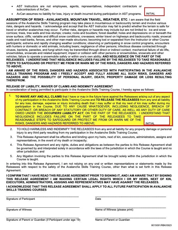 Pit and Peak Avalanche training waiver of liability please read before signing up for any of our courses.